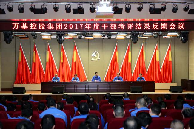 2月11日上午,萬基控股集團召開2017年度干部考評結(jié)果反饋會議,公司黨委書記、董事長李躍民就干部考評和干部隊伍建設(shè)工作做重要講話,公司總經(jīng)理郭峰宣布干部考評結(jié)果,公司黨委副書記王宏偉宣布后備干部選拔名單,公司中層及以上干部、后備干部共300人參加了會議。