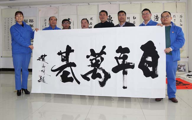中國(guó)書法家協(xié)會(huì)會(huì)員趙昌林回到了家鄉(xiāng)新安縣,于12月15日到萬(wàn)基控股集團(tuán)開展書法創(chuàng)作,欣然揮毫潑墨,雄渾瀟灑的書法作品一一躍然紙上。題寫的“百年萬(wàn)基”四個(gè)遒勁大字熠熠生輝,寓意萬(wàn)基持續(xù)發(fā)展,永續(xù)萬(wàn)年基業(yè)。