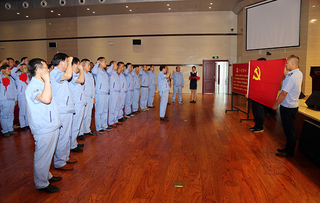 8時25分,大會在莊嚴的國歌聲中開幕。隨后,8名新黨員面對鮮紅的黨旗,在公司黨委副書記王宏偉的帶領下,舉起右手,莊嚴宣誓,光榮地加入黨組織的行列;現(xiàn)場全體黨員隨著新黨員一起重溫了入黨誓詞。