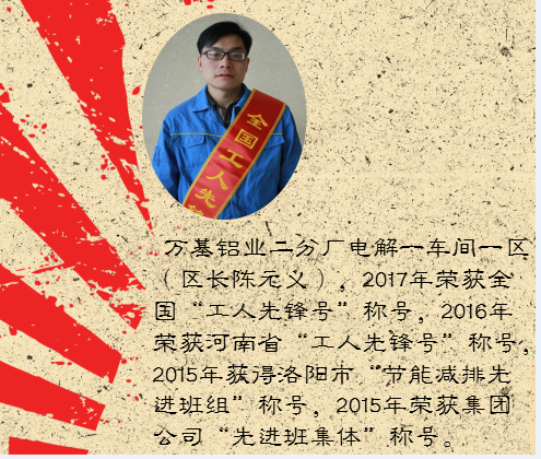 在“五一”國(guó)際勞動(dòng)節(jié)前夕,萬(wàn)基鋁業(yè)二分廠電解一車間一區(qū)榮獲全國(guó)“工人先鋒號(hào)”稱號(hào),閆學(xué)寶、耿凱榮獲洛陽(yáng)市“勞動(dòng)模范”稱號(hào),鄧花葵、王戰(zhàn)峰榮獲洛陽(yáng)市“五一勞動(dòng)獎(jiǎng)?wù)隆睒s譽(yù),姬紅莊榮獲新安縣“勞動(dòng)模范”稱號(hào)。