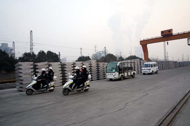 保衛(wèi)部巡邏隊員在進(jìn)行操練,堅決打擊各種危害企業(yè)生產(chǎn)經(jīng)營秩序的違法犯罪活動。