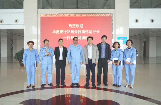 10月9日,華夏銀行鄭州分行藺偉副行長(zhǎng)一行到我公司調(diào)研,董事長(zhǎng)李躍民、副總經(jīng)理王尚友陪同。