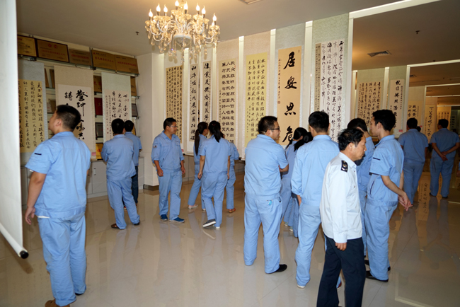 員工們在觀賞書法作品