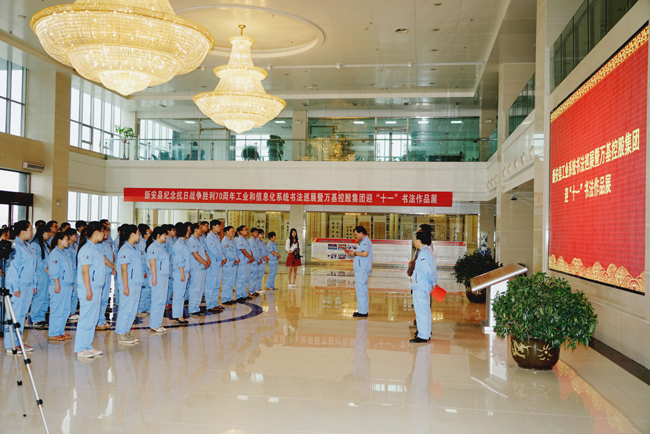 9月22日,在中秋、國慶雙節(jié)即將到來之際,由縣委宣傳部、縣書法家協(xié)會、縣工信局和集團(tuán)公司工會聯(lián)合舉辦的大型書法作品展在萬基大廈一樓大廳舉行。140余幅作品掛滿大廳,風(fēng)格各異:有的遒勁有力,深沉大氣;有的如行云流水,一氣哈成;有的龍飛鳳舞,筆走龍蛇;有的妙筆生花,隨心所欲;有的清麗雋秀,如小橋流水……這次舉辦的公司歷來規(guī)模最大、規(guī)格最高的書法作品展,吸引許多員工前來觀賞。