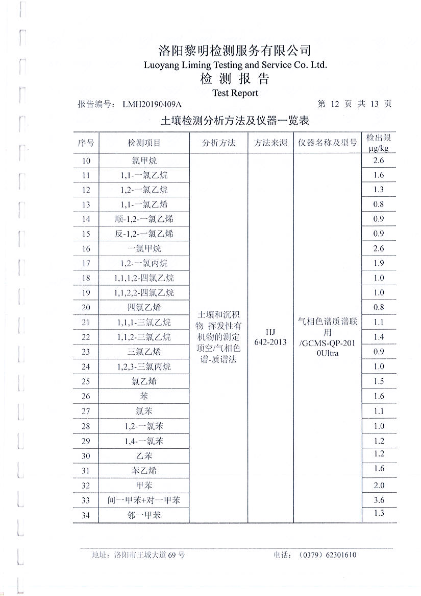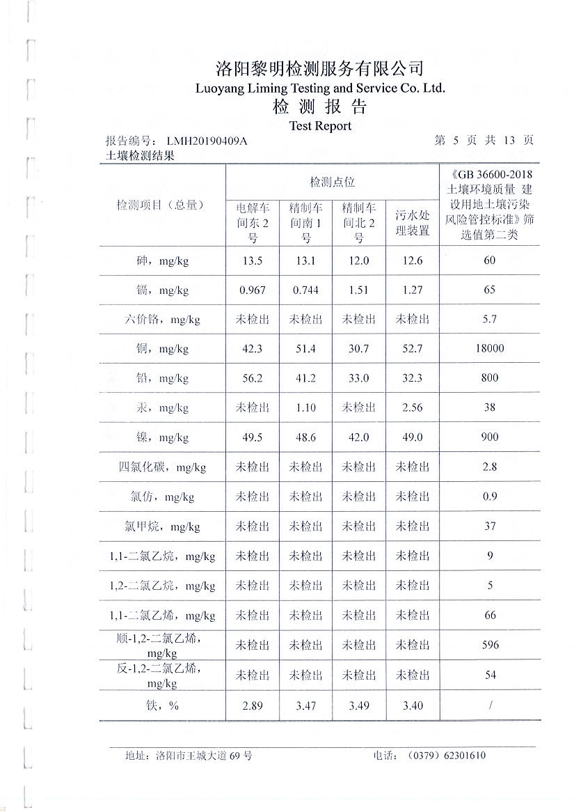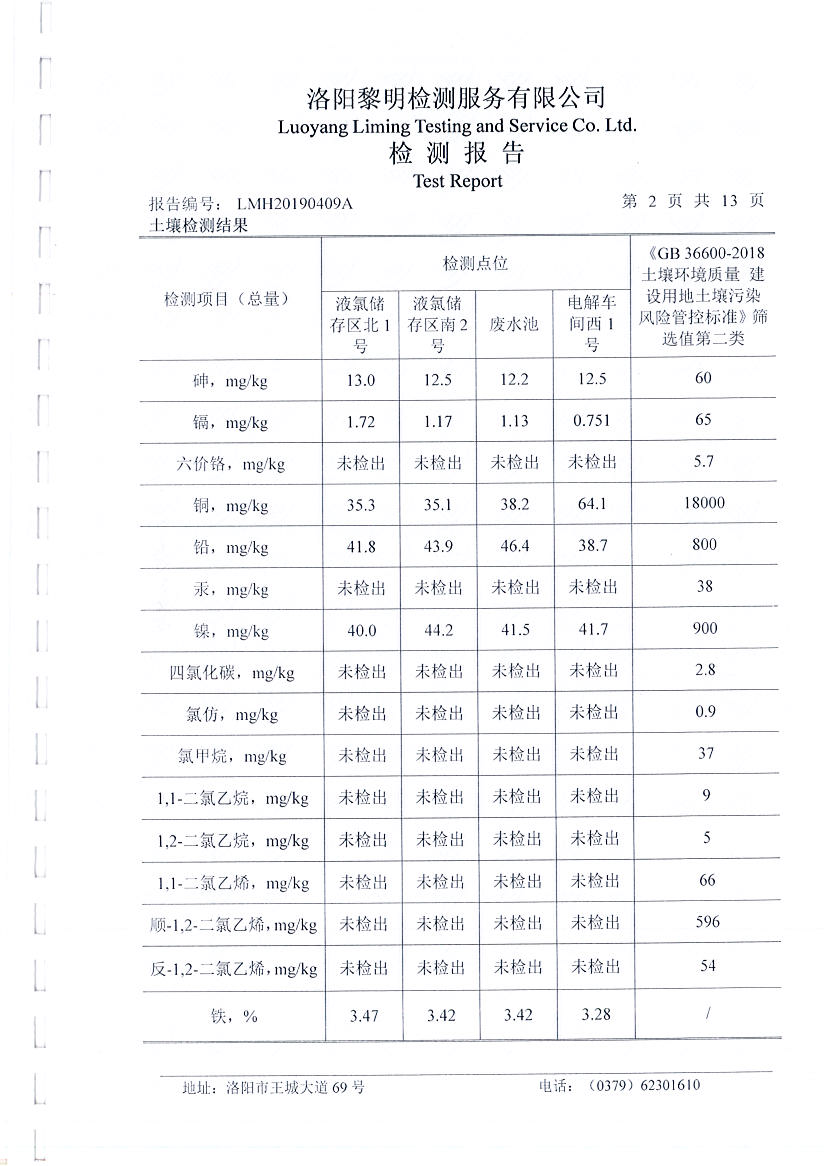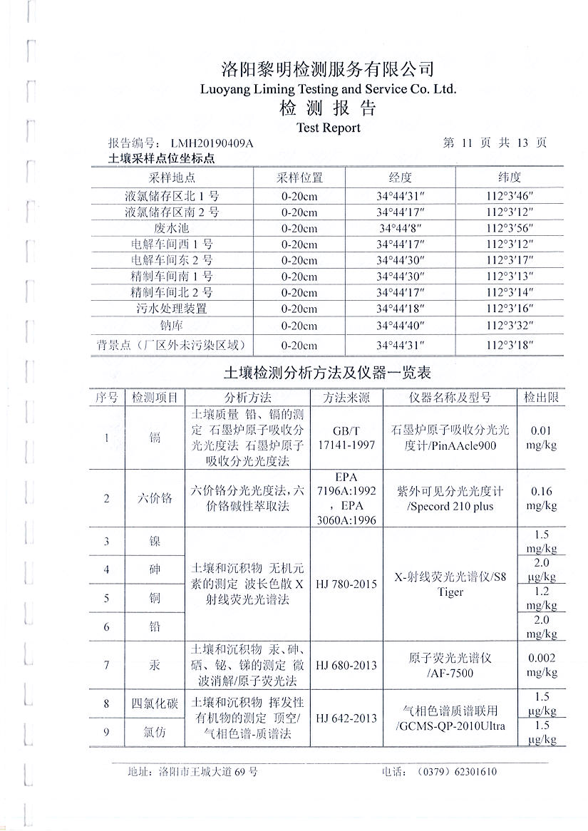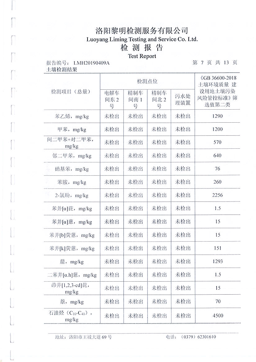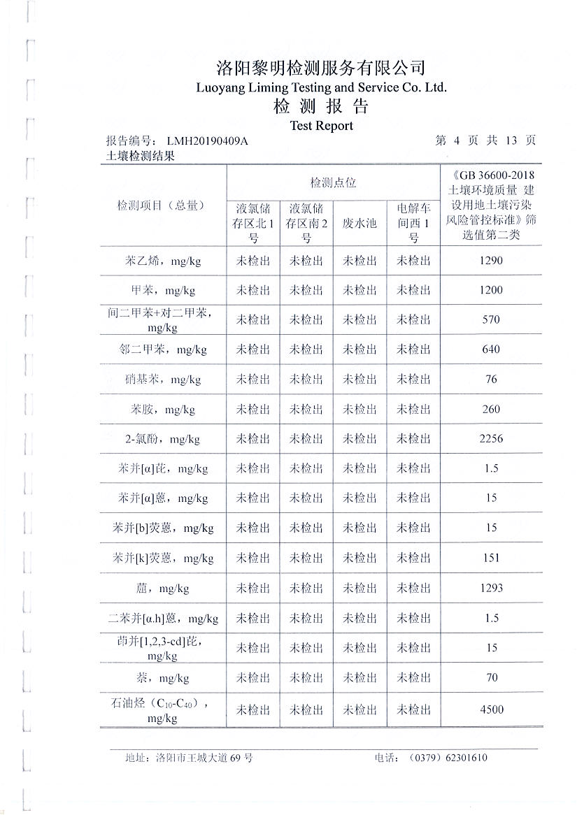 洛陽(yáng)萬(wàn)基金屬鈉公司土壤檢測(cè)報(bào)告公示