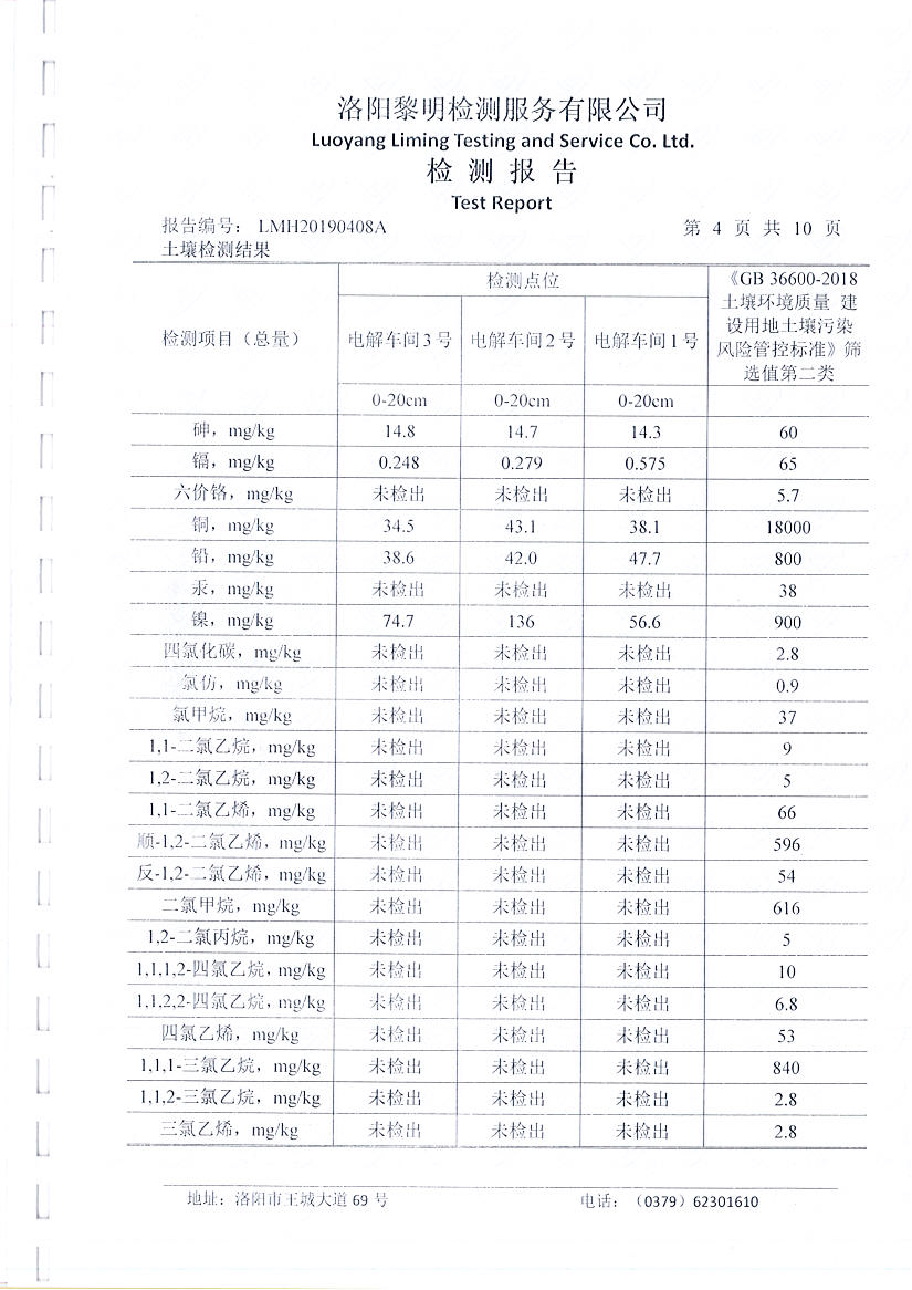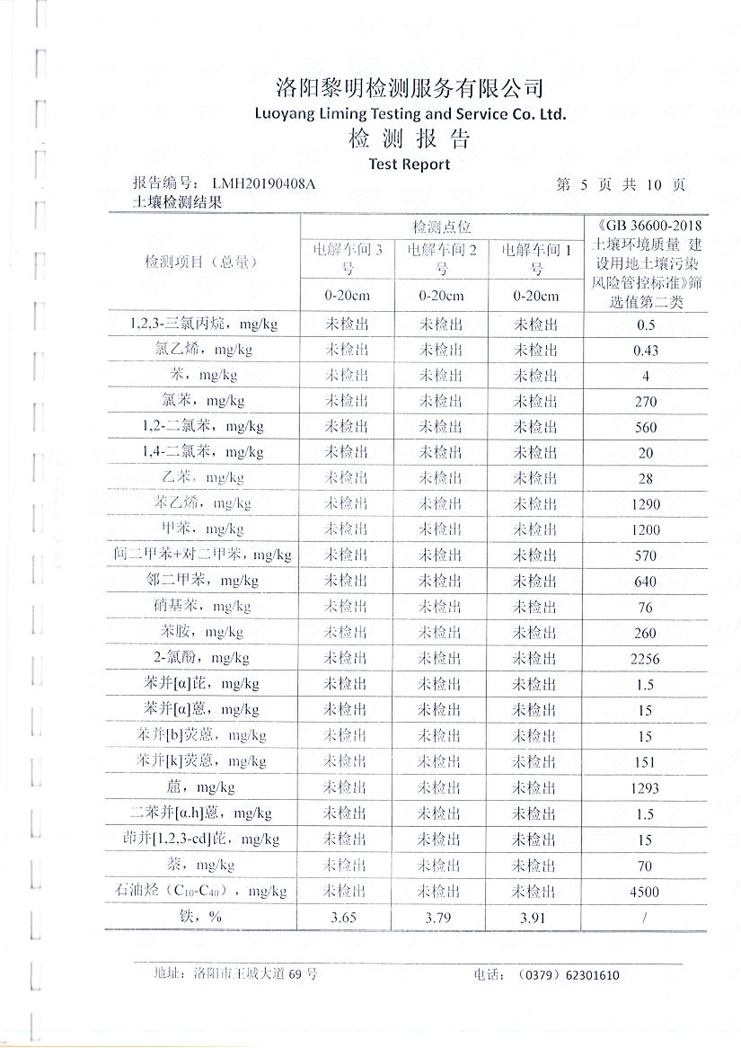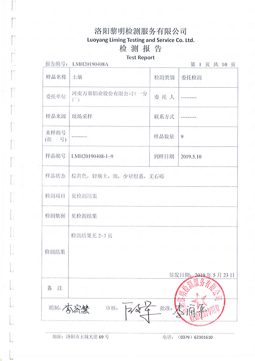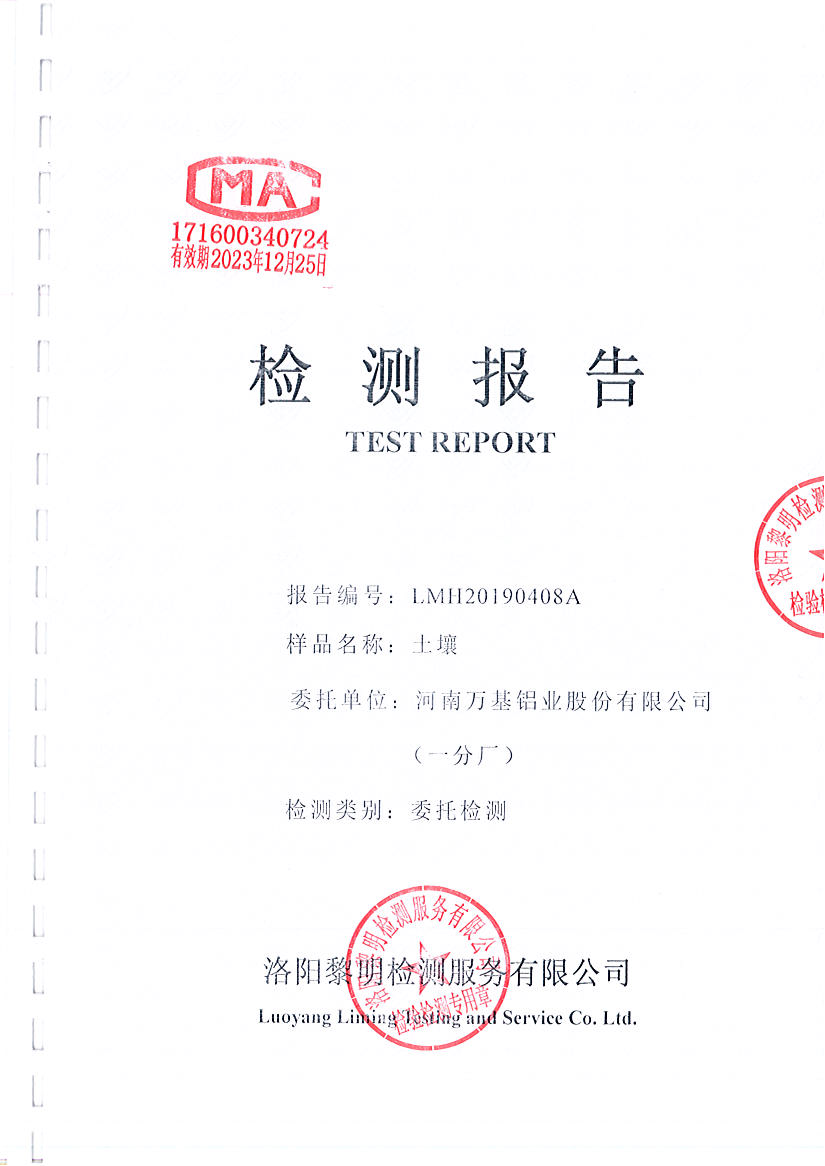 河南萬基鋁業(yè)股份有限公司(一分廠)土壤檢測報告公示