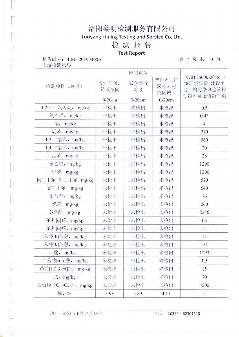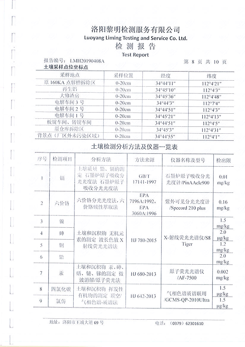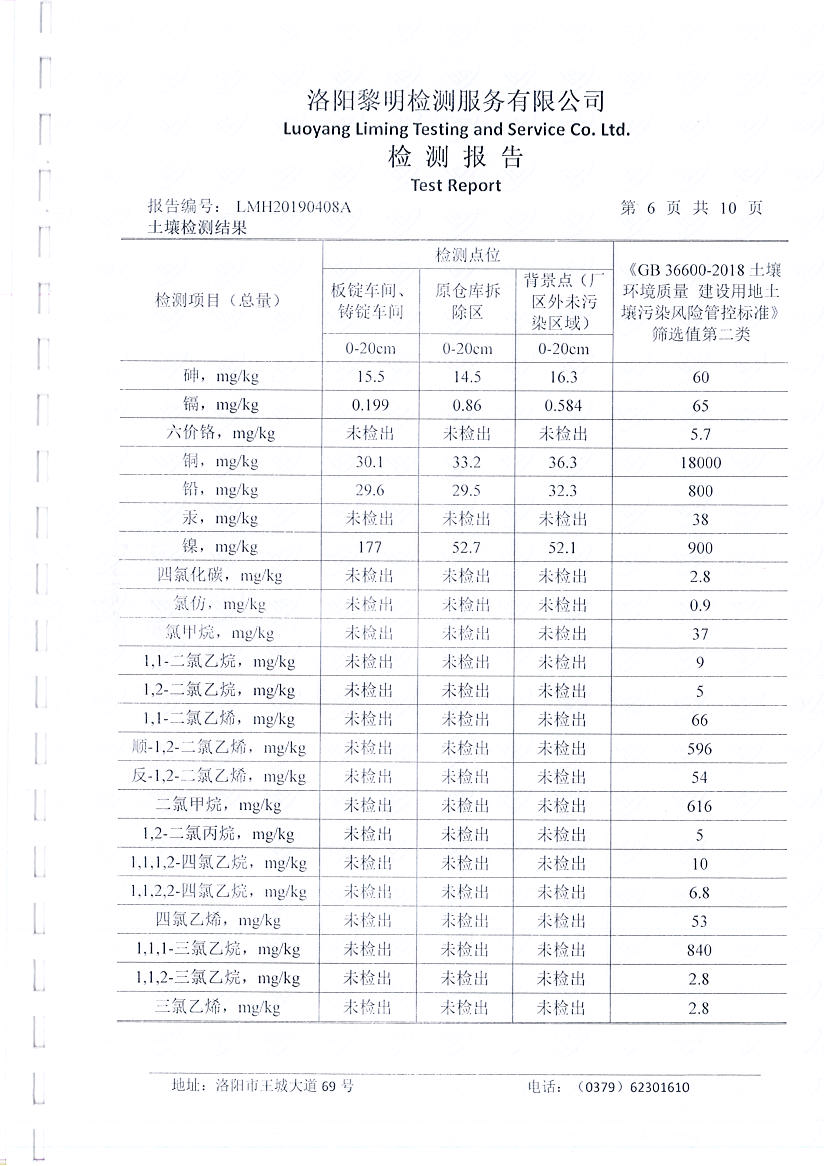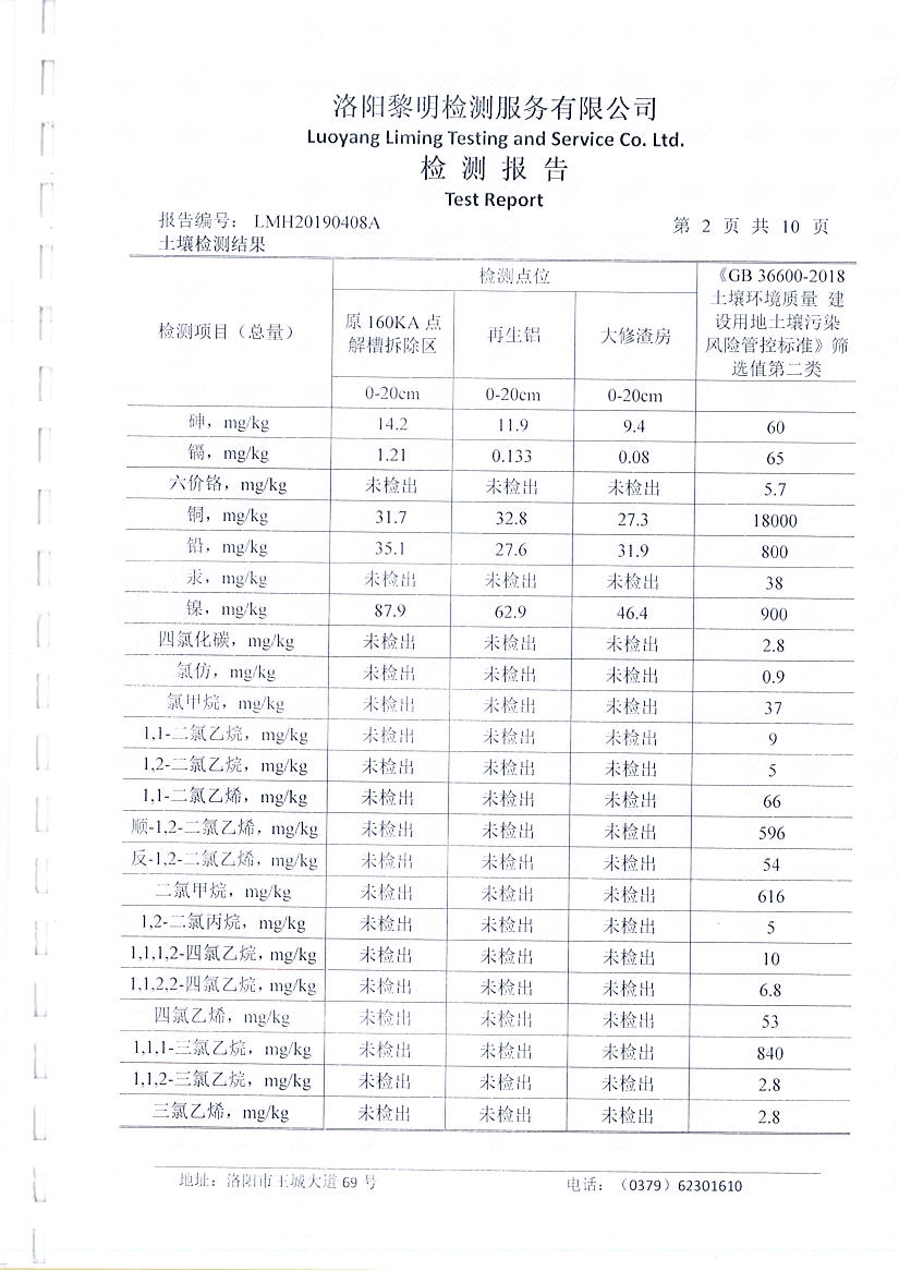 河南萬基鋁業(yè)股份有限公司(一分廠)土壤檢測報告公示