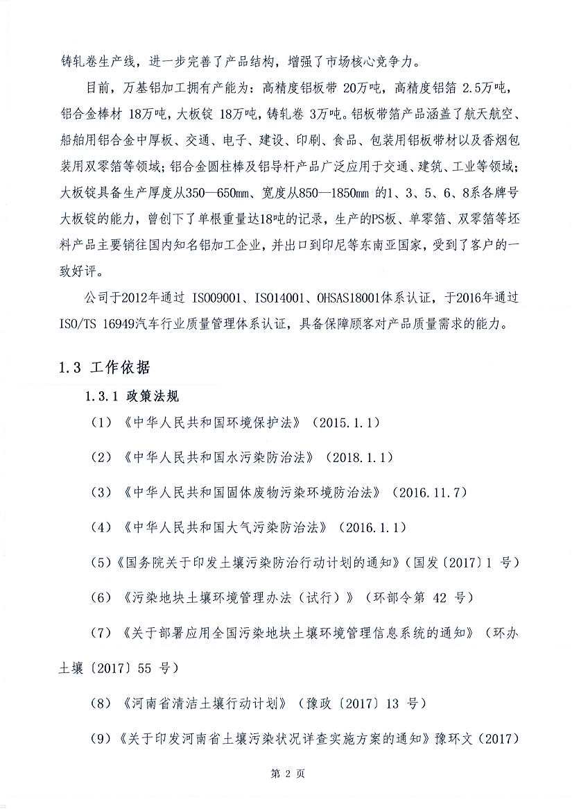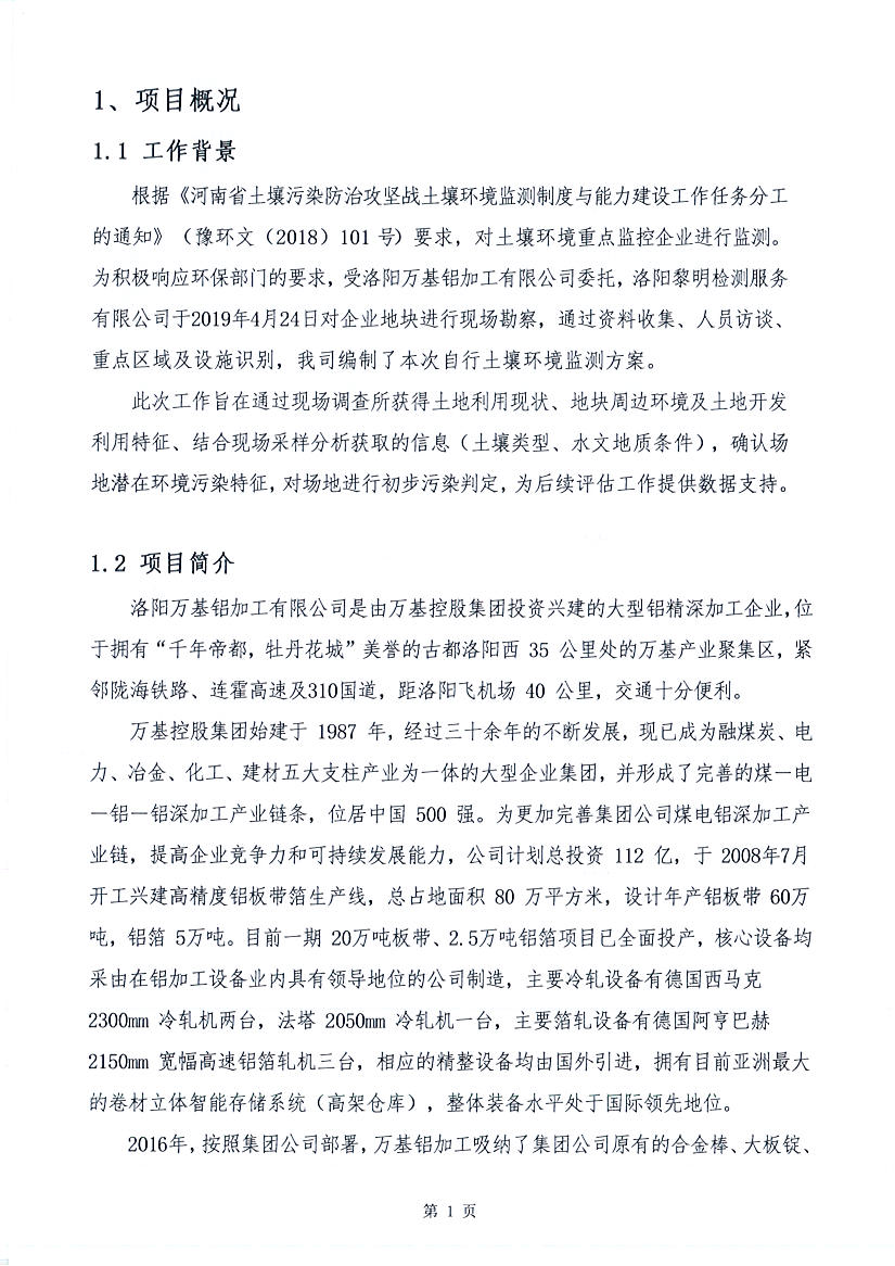 洛陽(yáng)萬(wàn)基鋁加工有限公司2019年土壤自行檢測(cè)方案