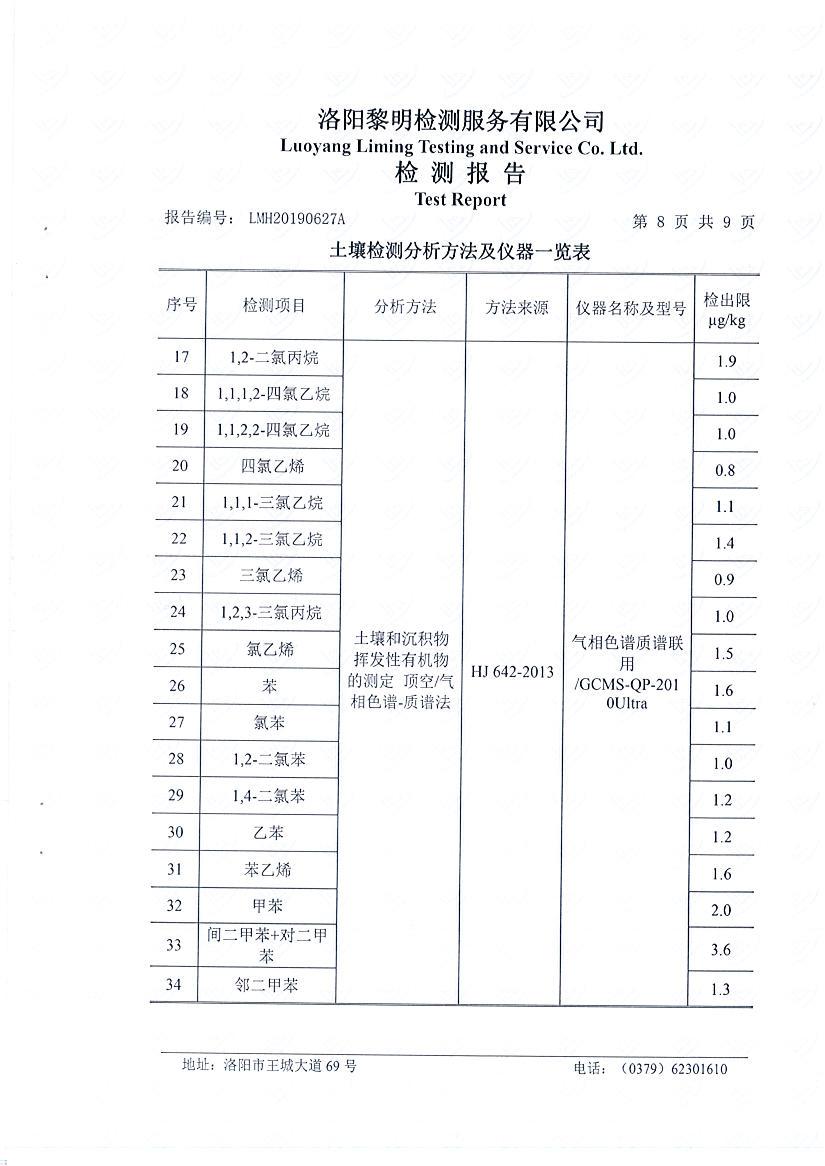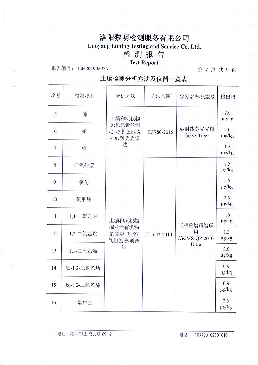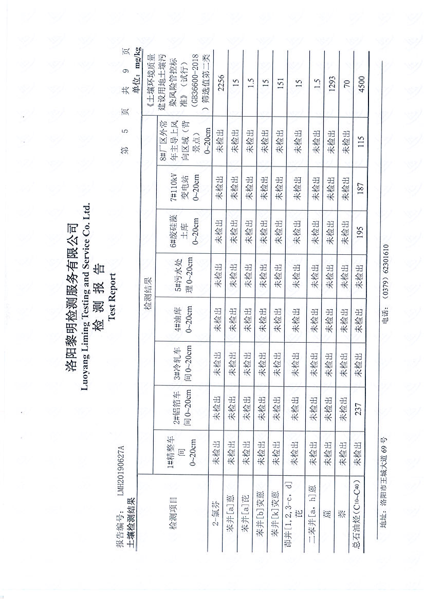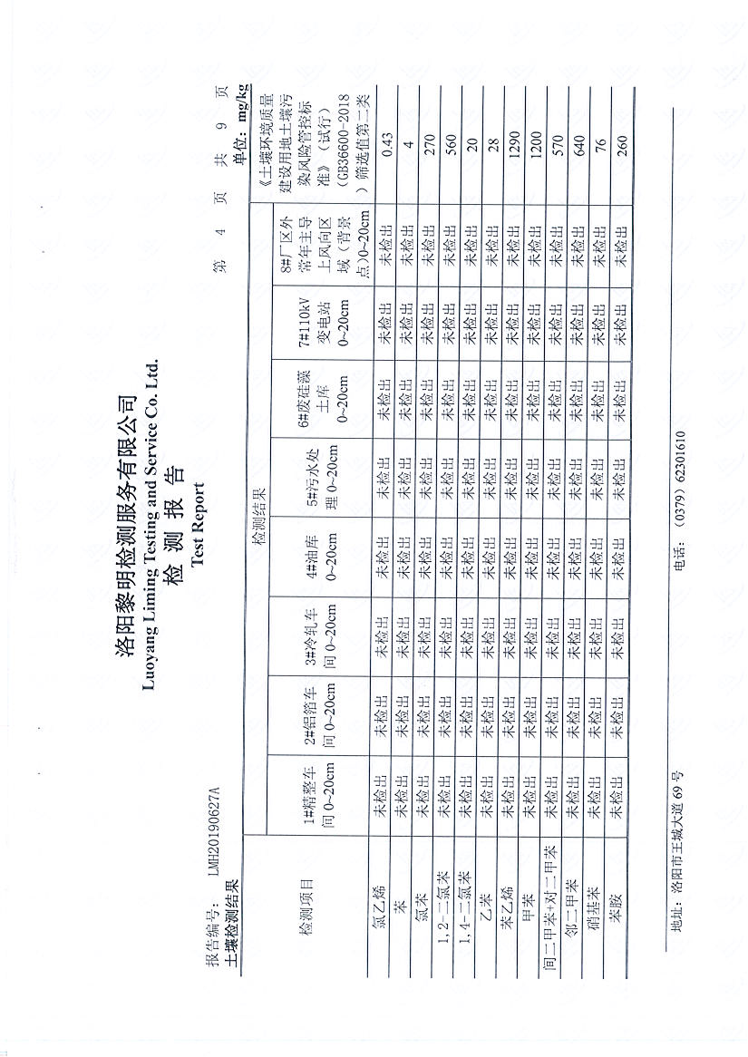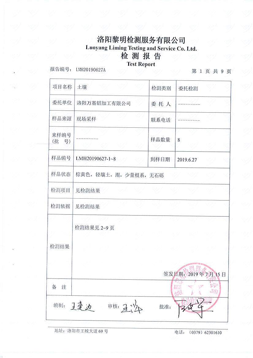 洛陽萬基鋁加工有限公司2019年土壤檢測報(bào)告