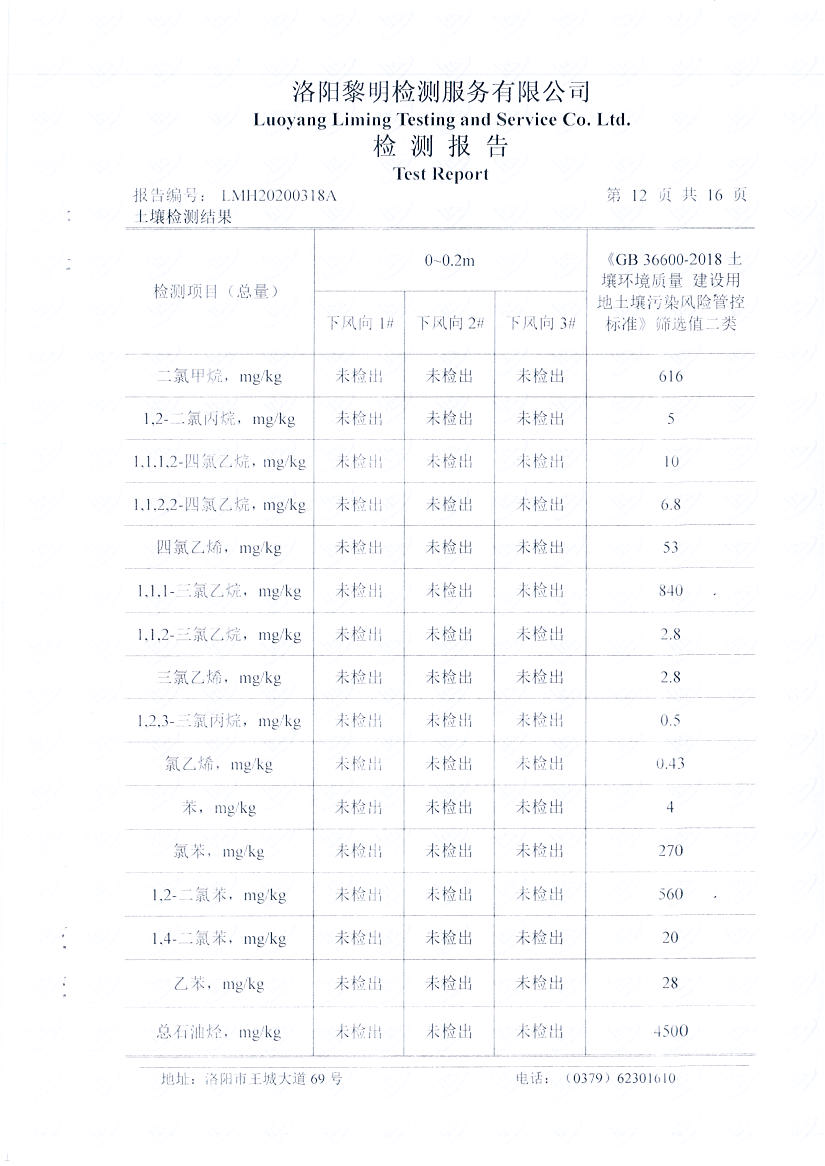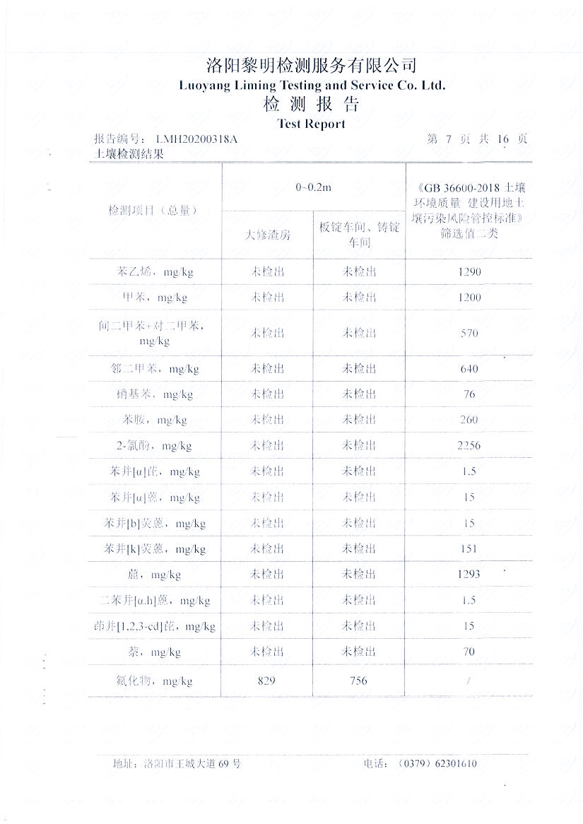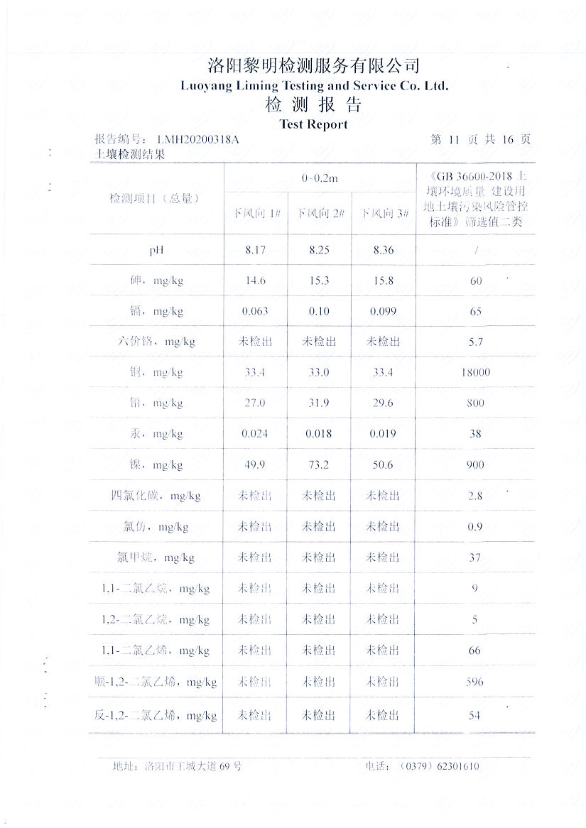 河南萬基鋁業(yè)股份有限公司(一分廠)2020土壤自行檢測報告