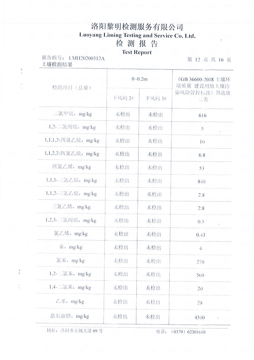 河南萬基鋁業(yè)股份有限公司(二分廠)2020土壤自行檢測報告