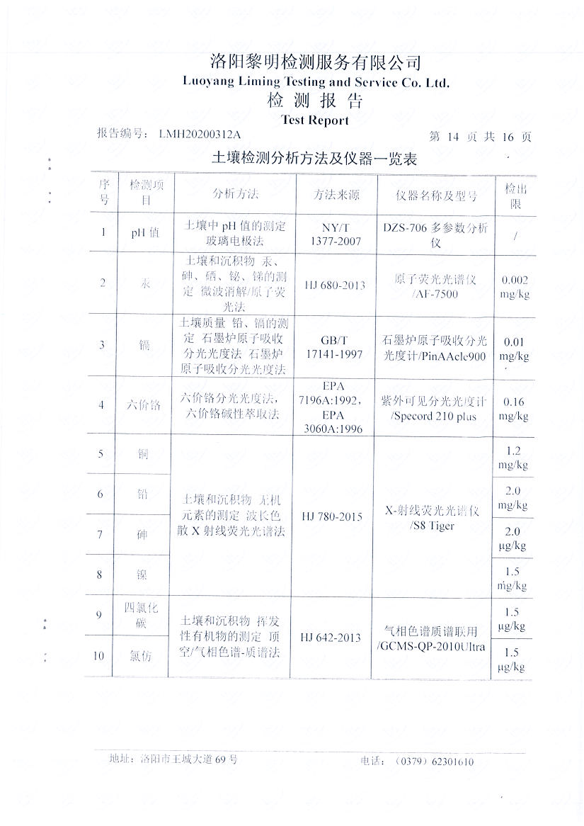 洛陽萬基鋁加工有限公司2019年土壤自行檢測方案