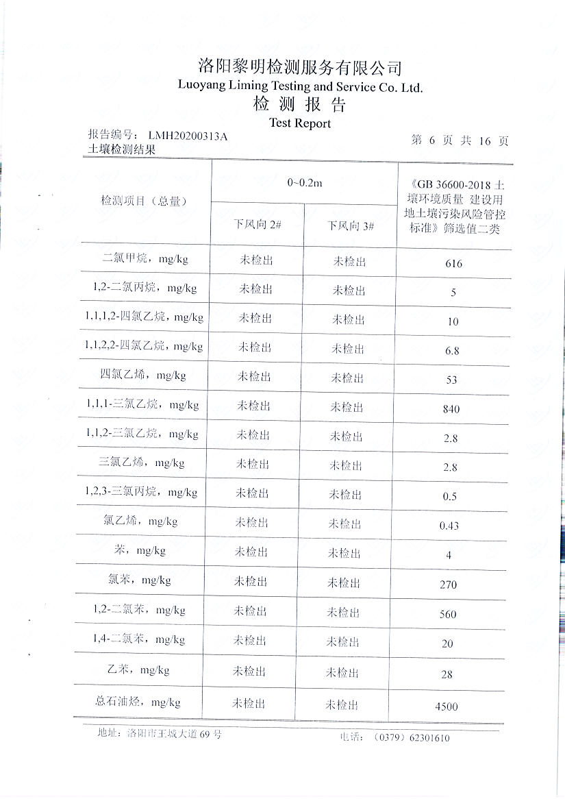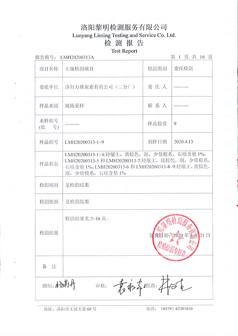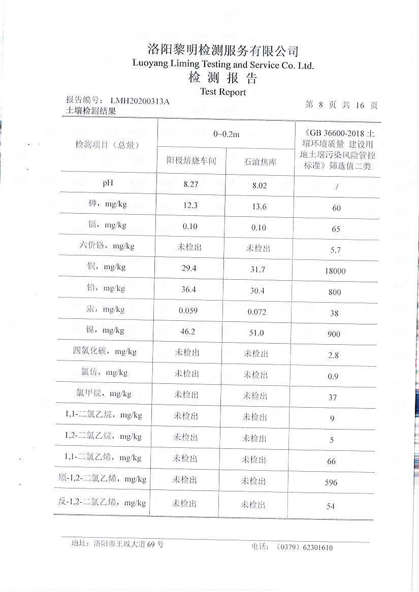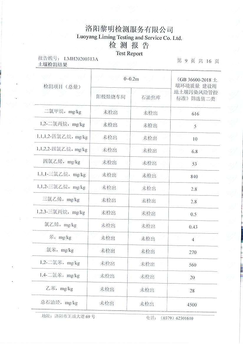 洛陽萬基炭素有限公司(二分廠)2020土壤自行檢測報告