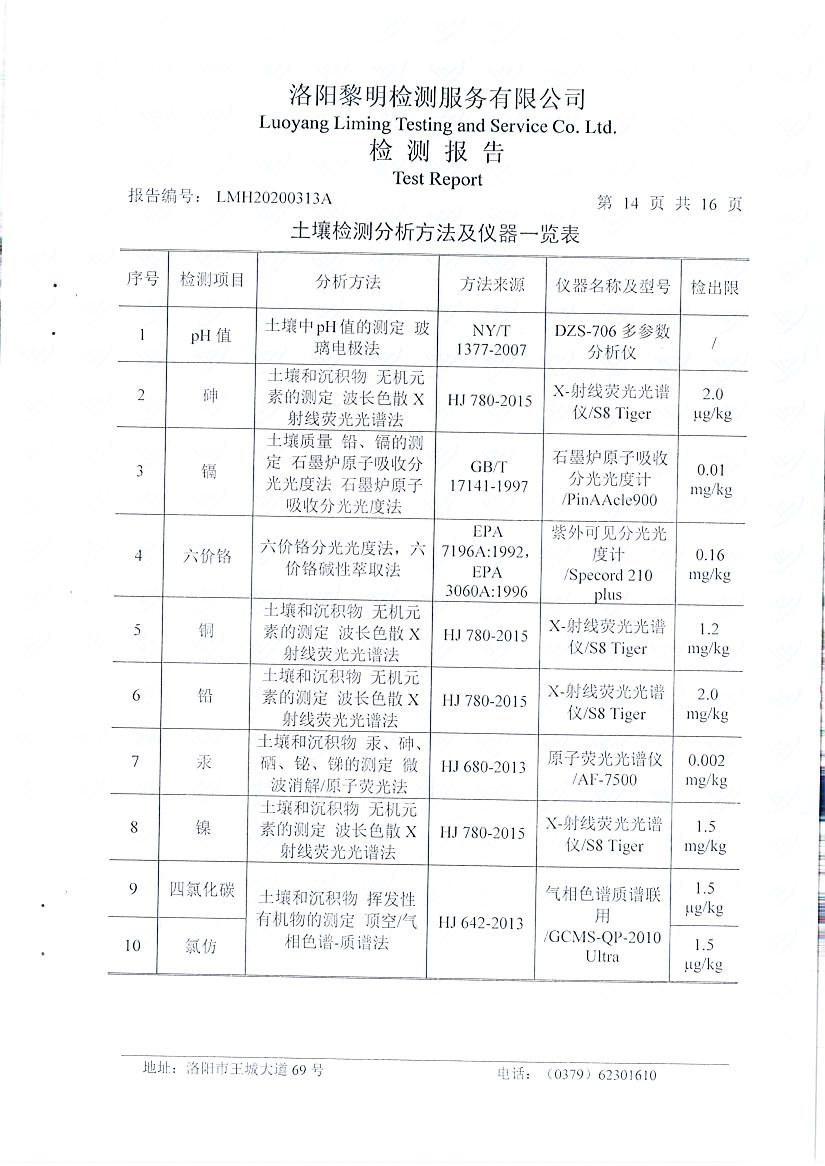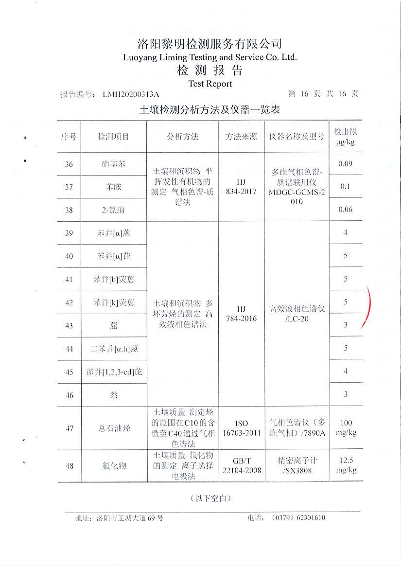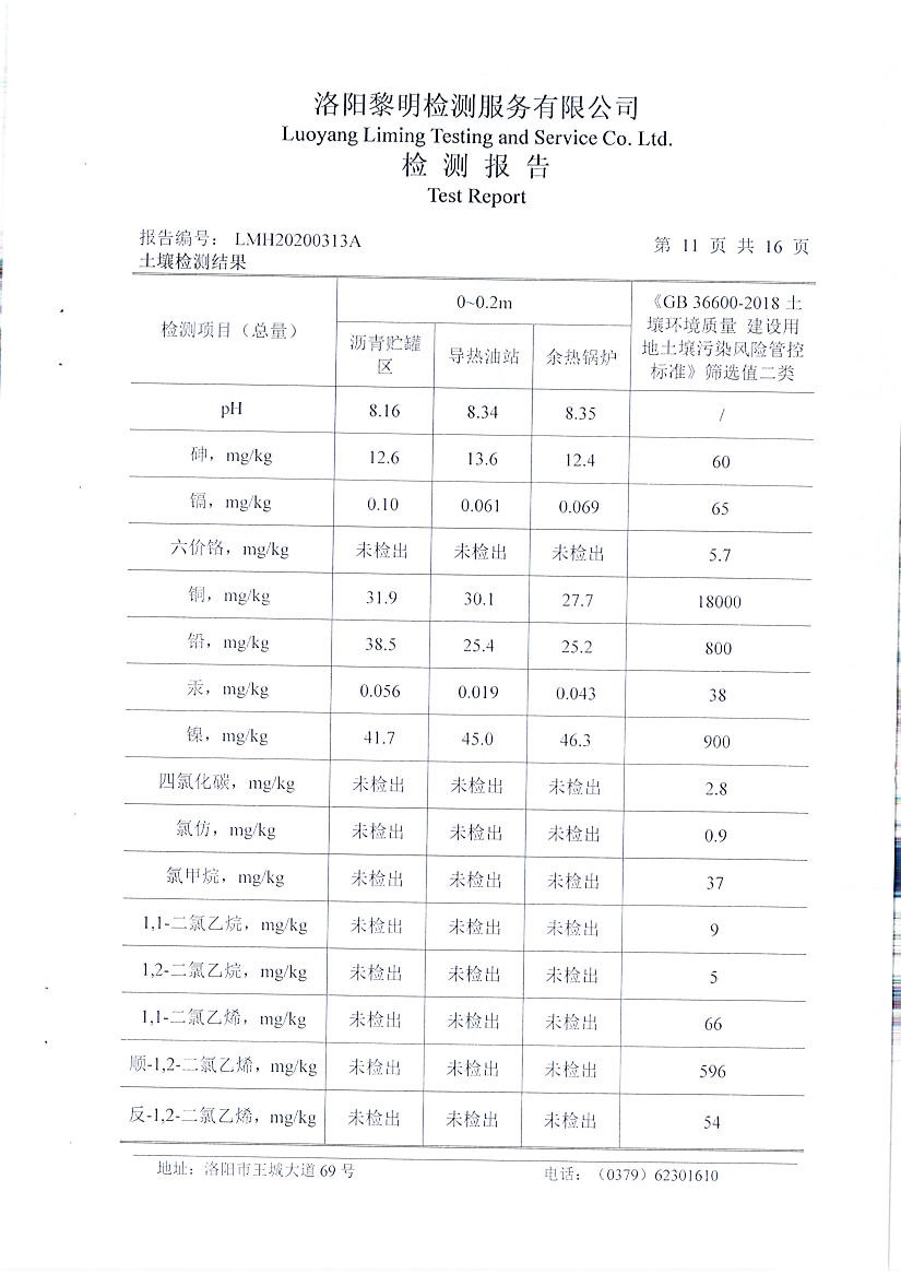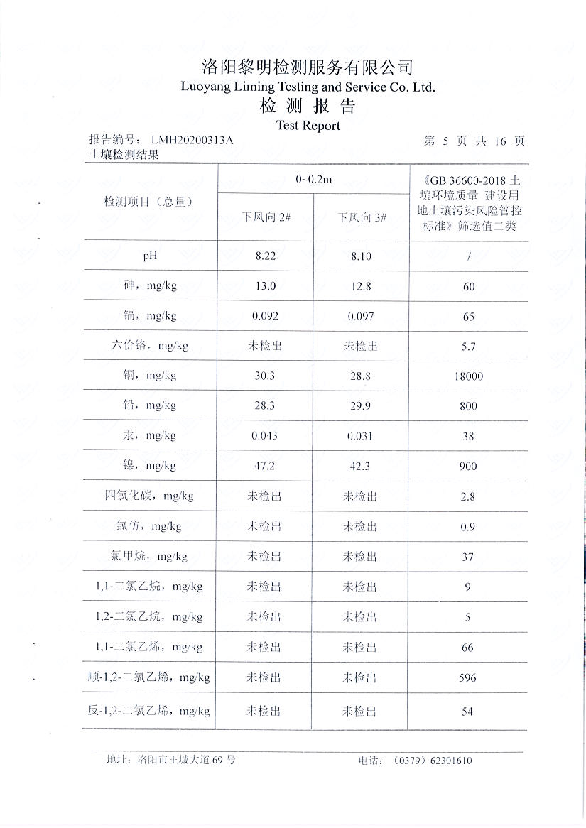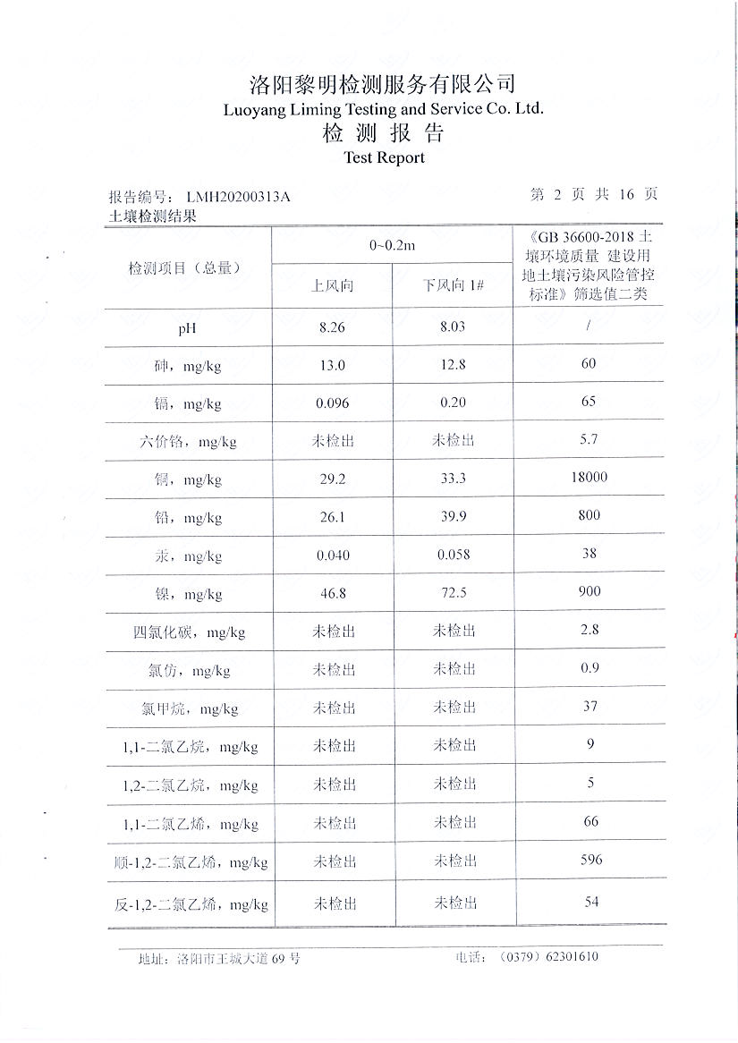 洛陽萬基炭素有限公司(二分廠)2020土壤自行檢測報告