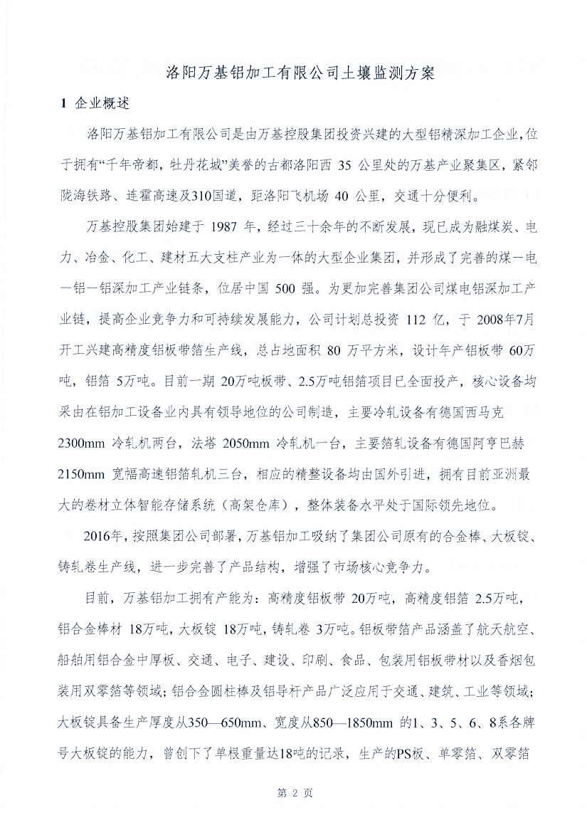 洛陽(yáng)萬(wàn)基鋁加工有限公司2020土壤自行監(jiān)測(cè)方案