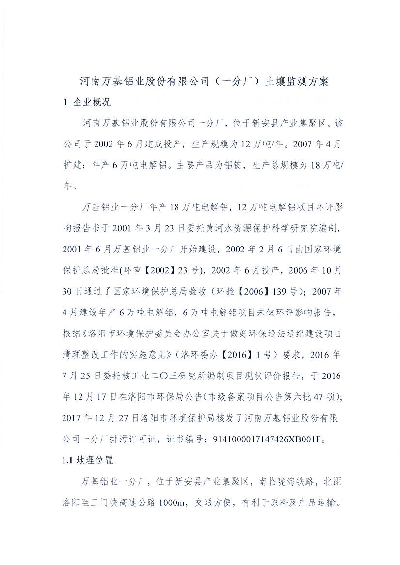 河南萬基鋁業(yè)股份有限公司(一分廠)2020土壤自行監(jiān)測方案